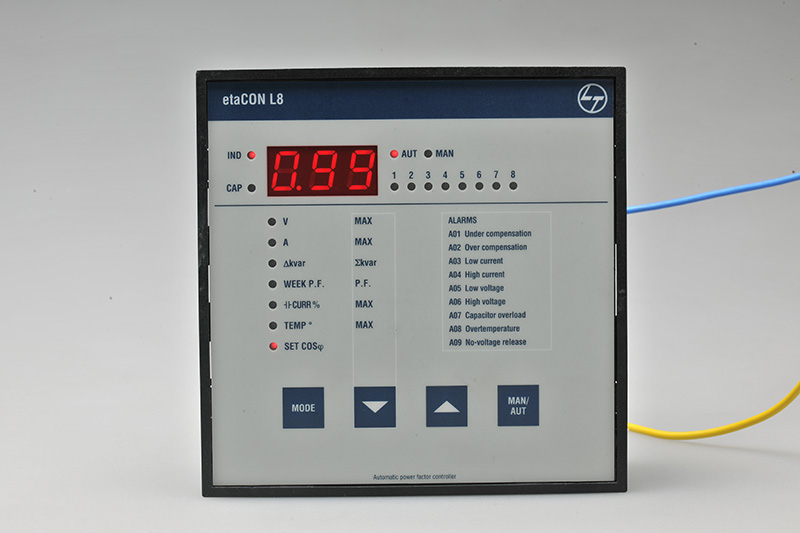 The etaCON series of digital power factor correction controllers automatically corrects the power factor, with the help of contactors for the connection and disconnection of capacitor banks. L&T offers a wide etaCON range: 3, 5, 7, 8 and 12-step versions. etaCON ensures balanced capacitor usage by intelligent adjustment interface based on the number of switching operations and the connection time of each step, thus ensuring long life for switchgear and capacitors.